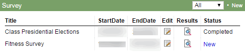 Note: You do not have to complete a survey in one sitting. If you do not complete it, it appears in the Survey widget with a status of In progress.